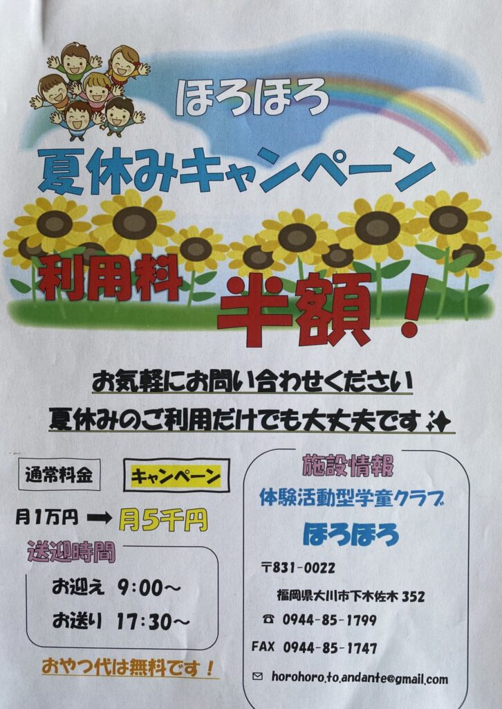 「体験活動型学童クラブ ほろほろ」 夏休みキャンペーンを実施します!